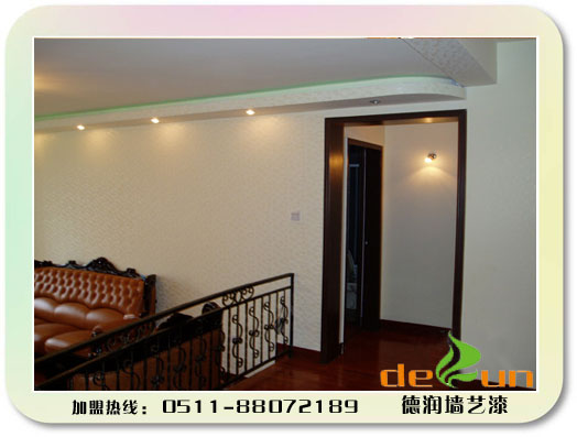 室内装饰材料“德润”壁纸漆,不同色彩、不同风格的变幻效果,让您能真正体会到新一代环保建筑装饰材料的优越性和优越的市场前景,开创性地结合多种涂装工艺,彩涂内墙,让室内装饰品质不凡!详情请浏览公司网站或联系业务部。